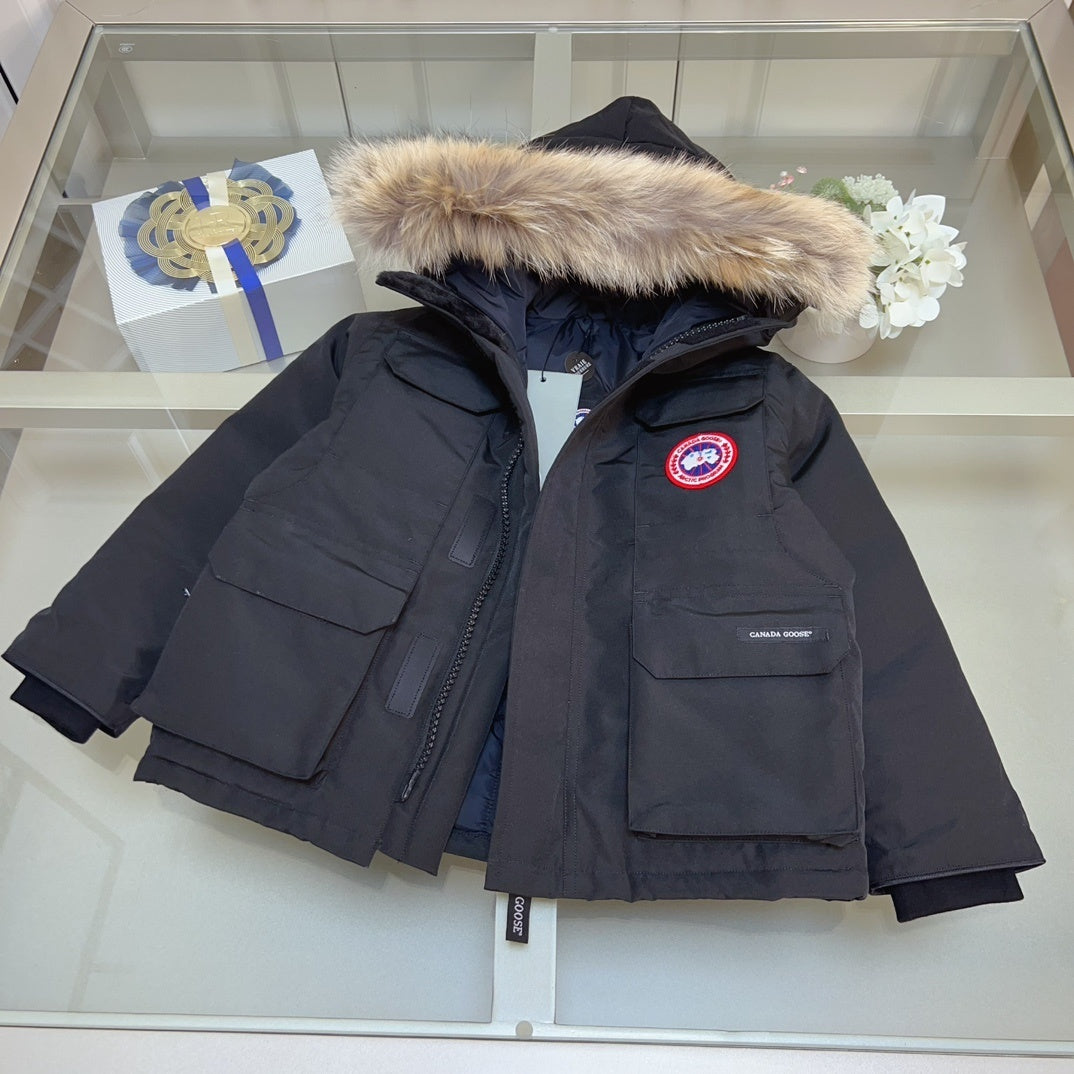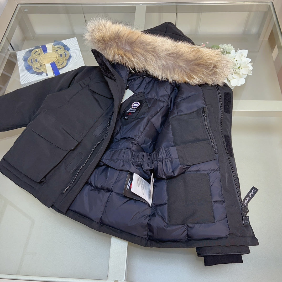 KIDS DOWN COAT - FLUFF HOOD BLACK